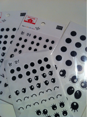 今日ビバホームにて買った、おめめシールつかえるっ。
