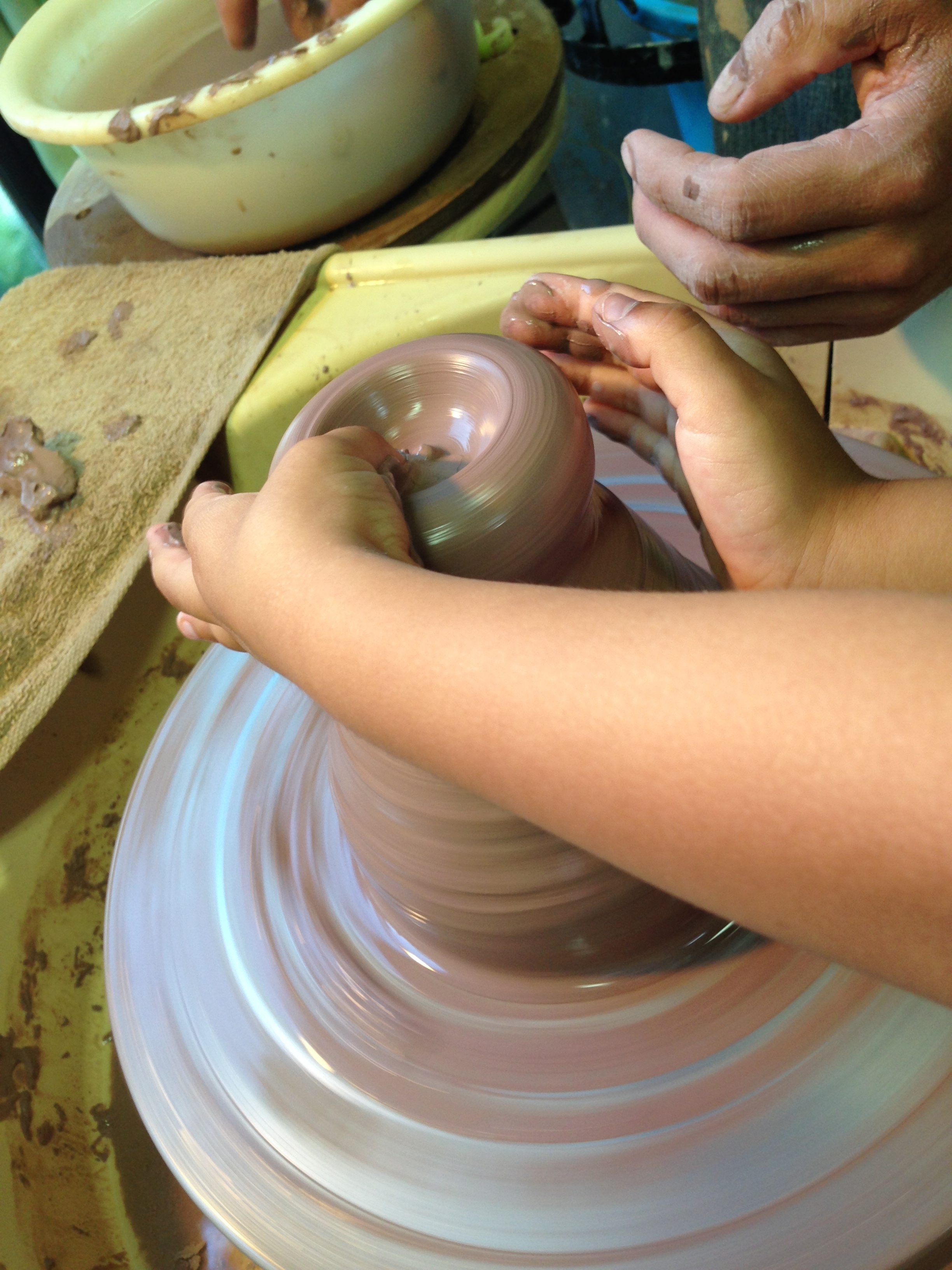 先生に手伝ってもらいながら、くるくるまわる粘土と戦っておりましたw